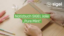 Das Video zeigt das SIGEL Notizbuch Jolie „Pure Mint“ mit der Artikelnummer JN841 in einer stilvollen Produktpräsentation. Zu Beginn wird das Notizbuch in einer Nahaufnahme vorgestellt. Es liegt auf einem hellen Untergrund und zeichnet sich durch sein Kraftpapier-Hardcover mit mintgrünen Aktzenten aus. Die Kamera fährt langsam über das Cover und betont die hochwertige Verarbeitung sowie das puristische Design.Im weiteren Verlauf wird das Notizbuch geöffnet. Dabei werden Details wie das farblich passende Lesebändchen, das praktische Gummiband zum Verschließen und die Innenseiten mit feiner Linienstruktur gezeigt. Die Seiten wirken hochwertig und sind für handschriftliche Notizen, Skizzen oder Planungen geeignet.Die Präsentation zeigt das Notizbuch aus verschiedenen Perspektiven – geschlossen, geöffnet und in Kombination mit Schreibutensilien. Es wird deutlich, dass das Produkt sowohl funktional als auch ästhetisch ansprechend ist. Die ruhige Kameraführung und die harmonische Hintergrundmusik unterstreichen den puristischen Charakter des Notizbuchs. Am Ende wird das Notizbuch nochmals in einer Gesamtansicht gezeigt, begleitet vom SIGEL-Logo.
