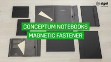 The Conceptum notebook is the elegant, modern companion for the office and for private use. The classy designer notebook is anything but ordinary, with an exclusive look and feel, along with a quality and practical features that are bound to impress. Your notes are organised efficiently and always on hand with the stylish squared notebook in A4+ format (24,50 x 31,50 x 2,20 cm) with 194 pages (including 20 sheets perforated pages). The sturdy hardcover in black guarantees a firm writing surface and the magnetic fastener keeps everything securely in place.