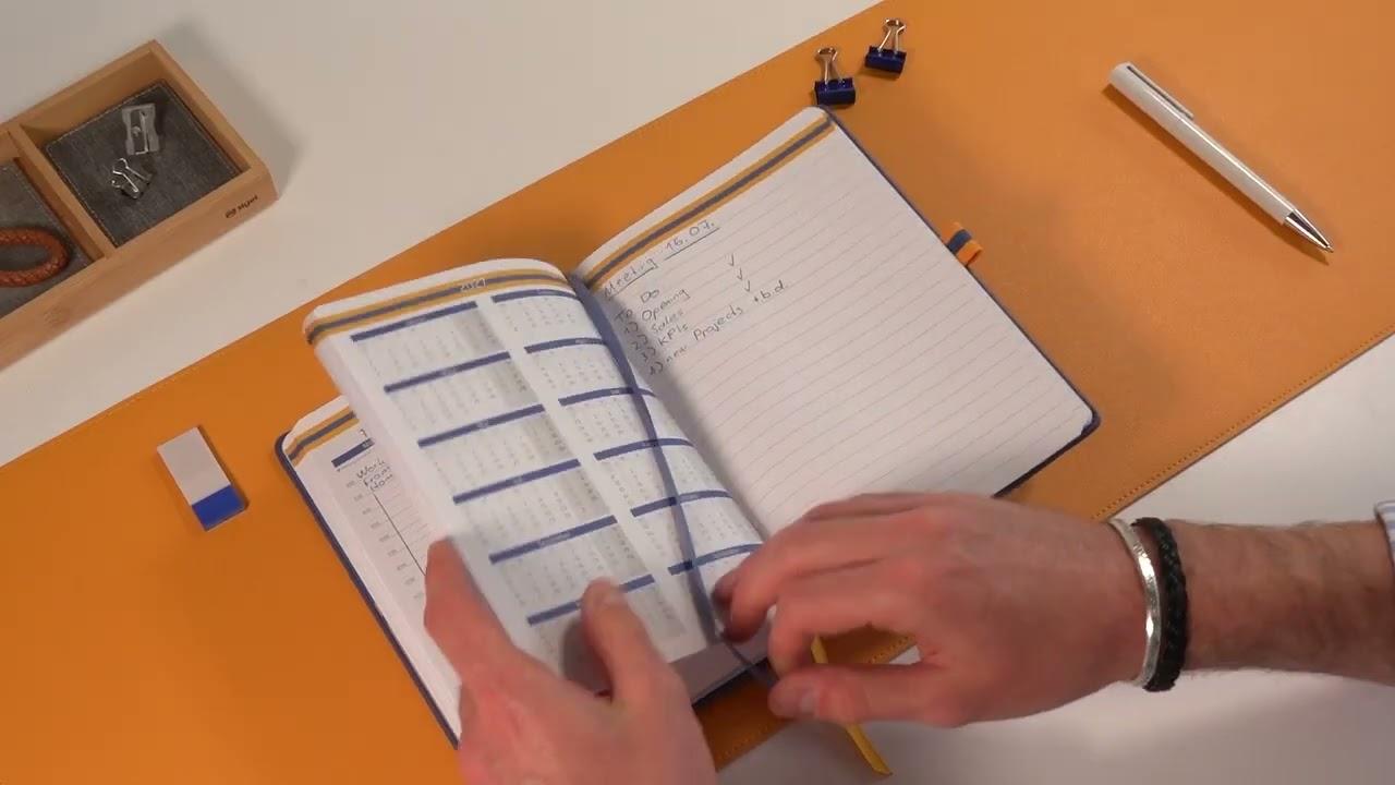 Looking for a planner that is ideal for use both in the modern business world and in the private sphere? Then look no further than this bound planner from SIGEL's linescape range. The planners are also available in other colour combinations, but all come with a stylish splash of mustard yellow - for people with the confidence to stand out from the crowd. Made of soft PU, the cover is understated, yet with features in accent yellow: the elastic fastener, ribbon markers, the two-tone pen loop and the flyleaves are all picked out in in this striking shade. The 176 pages (FSC-certified) contain weekly planners with a vertical layout, monthly and year calendars, public holidays and school holidays, along with lined pages for notes. The entire book is vegan.