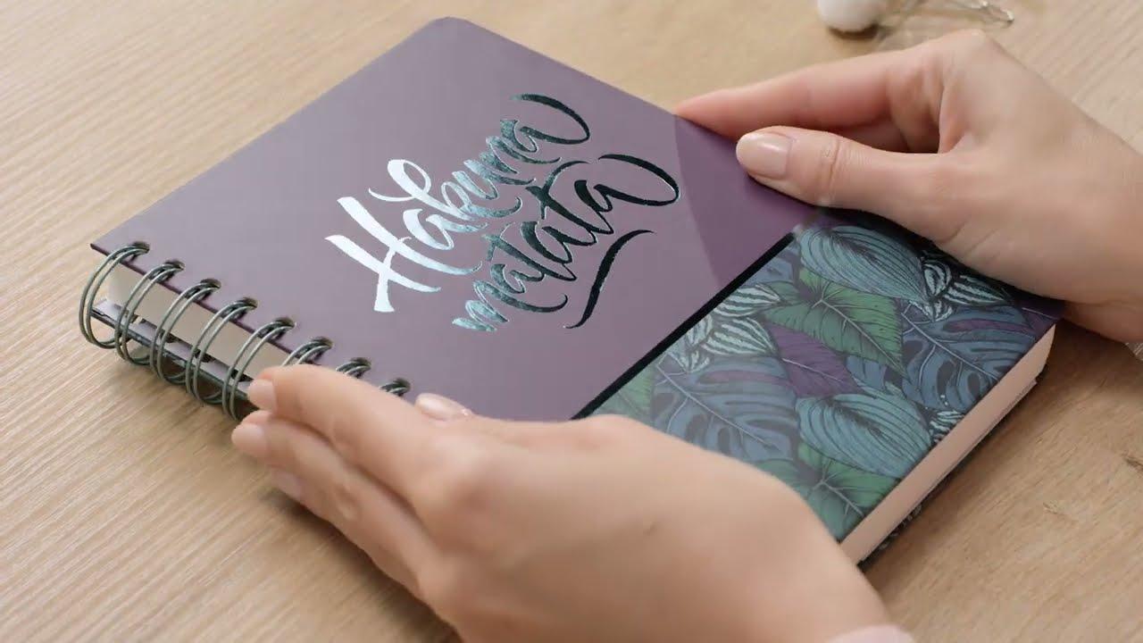 La vidéo présente le carnet à spirales SIGEL Jolie JN613 au design « Jungle Dreams ». La couverture est présentée de l'extérieur. Elle arbore un motif tropical composé de feuilles et d'éléments floraux dans différentes nuances de vert, rehaussé de touches dorées. La finition brillante met en valeur les détails et confère au carnet un aspect haut de gamme et dynamique. Au fil de la vidéo, le carnet s'ouvre pour révéler la reliure spirale et l'intérieur. Les pages sont pointillées et perforées pour un retrait facile. Une pochette intégrée au dos est également visible, idéale pour ranger notes, photos ou petits papiers. La caméra montre comment le carnet peut être entièrement plié, grâce à sa couverture à 360° et à sa reliure spirale robuste. Ce carnet, au format A5 environ, est particulièrement adapté aux applications créatives telles que le lettrage manuscrit, le bullet journal ou les notes personnelles. La qualité de fabrication, le papier certifié FSC et le design moderne sont au cœur de la présentation.