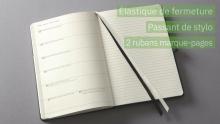 • Fermeture élastique, passant-stylo, pochette "Quickpocket", pochette à soufflet, 2 rubans marque-pages, planche de stickers