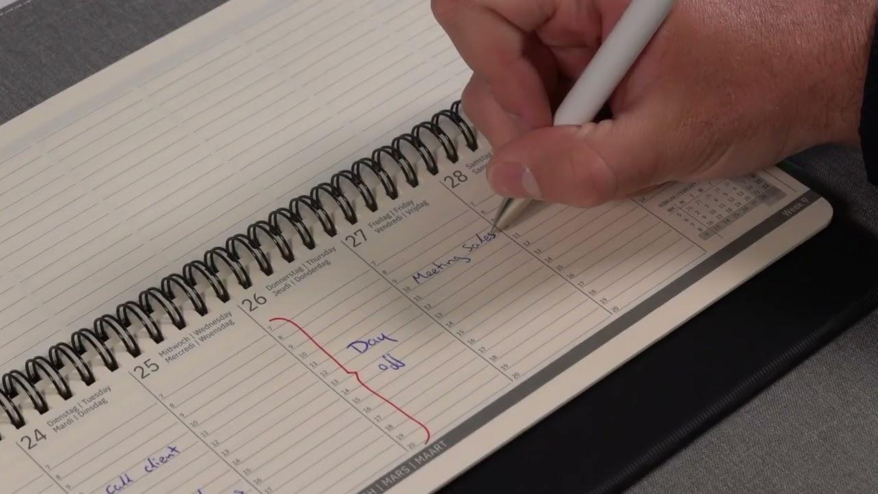 De Conceptum tafelagenda begeleidt u met edel design door het jaar. Zo heeft u de afspraken van een week of van een maand op uw werkplek altijd overzichtelijk bij de hand. Altijd stijlvol georganiseerd - met de tafelagenda voor 2026 (calendarium: 2 pagina"s = onder week/ boven notitiepagina, DE/GB/FR/NL) met 144 pagina's. Extra weekplannings- en notitiepagina's maken voor u bij de maandagenda in A5-liggend formaat (21,30 x 22 x 1,80 cm) een overzichtelijke afsprakenplanning mogelijk.