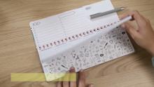 - Calendarium/planningspagina's om de gegevens zelf in te vullen, to-do-lijsten, plaats voor notities (in DOT-liniatuur)