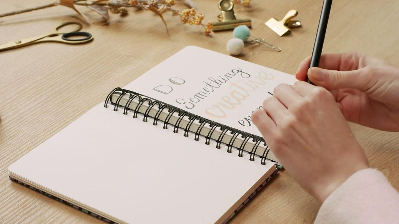 - Wit papier (FSC-gecertificeerd) met afgeronde hoeken, ideaal voor creatief trends zoals Handlettering en Bullet Journaling