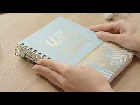 Wie zijn notitie- en dagboeken individueel wil vormgeven zal van het spiraalblok houden. Het moderne, trendy notitieboek zorgt voor veel plezier omdat de creatieve schrijfkunst op de voorgrond staat. Wordt u Handlettering-professional - met het mooie Jolie spiraal-notitieboek "Heavenly Leaves" in het formaat ca. A5 (16,80 x 21,50 x 2,80 cm) met 240 pagina's (punt-geruit, 120 g/m², alle bladen geperforeerd). De stevige hardcover band in lichtblauw/wit/goud garandeert stabiliteit bij het schrijven en tekenen.