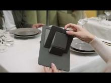Kan bijvoorbeeld gebruikt worden in de horeca voor de presentatie van snel wisselende menukaarten, maar ook als hoogwaardig klembord in praktijken of klinieken en als standaard voor informatiebalies in uiteenlopende branches zoals schoonheidssalons, autodiensten, etc. Menukaart-klembord van polyurethaan (PU), beige, met de afmetingen 16,50 x 23,50 x 1 cm, passend voor het formaat A5.