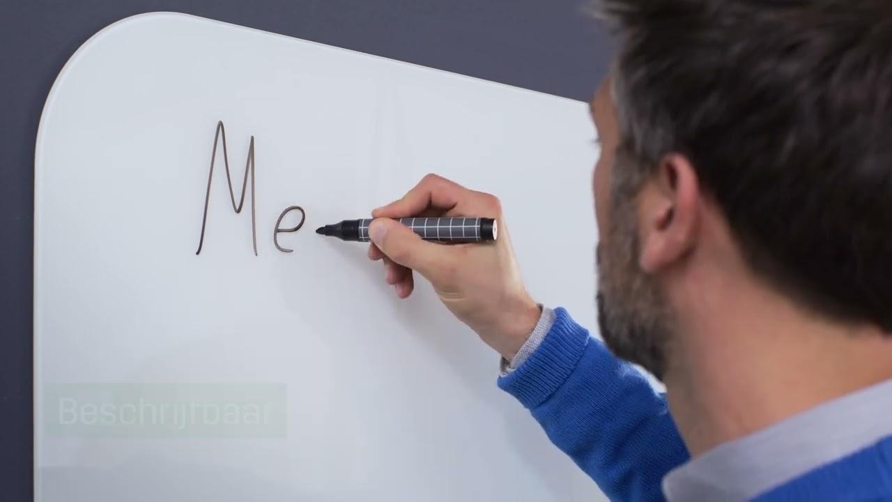 - Alleen magnetisch met sterke neodymium magneten, beschrijfbaar met krijt- en glasboardstiften, afneembaar met een vochtige of droge doek